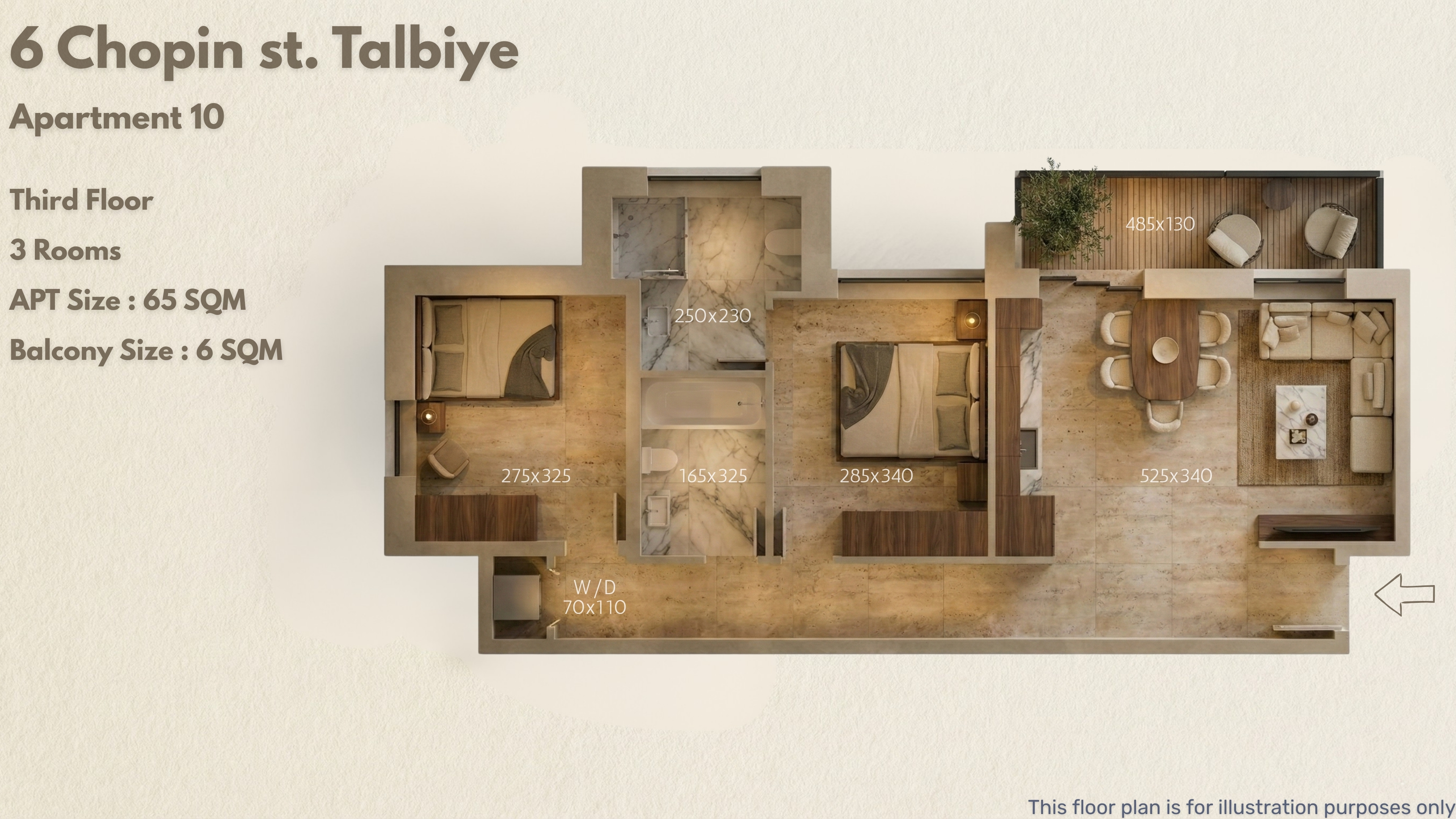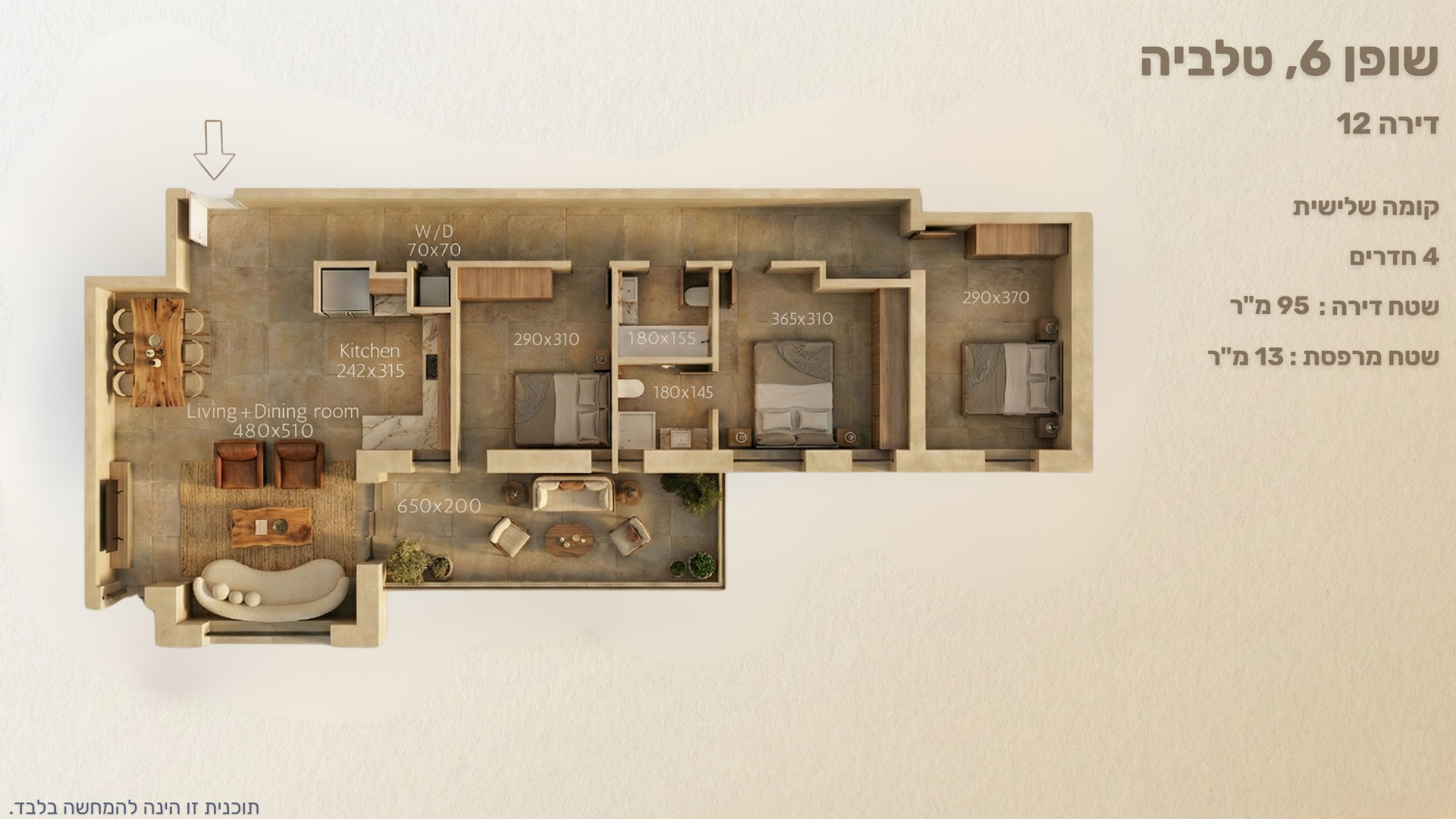 מפרט הדירות כולל מטבח ממטבחי סמל, מערכת חימום תת-רצפתי (משאבת חום) ומיזוג אוויר מרכזי אינוורטר.