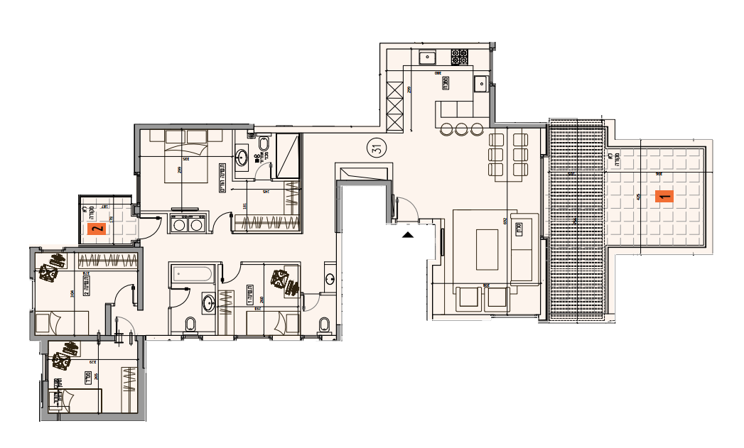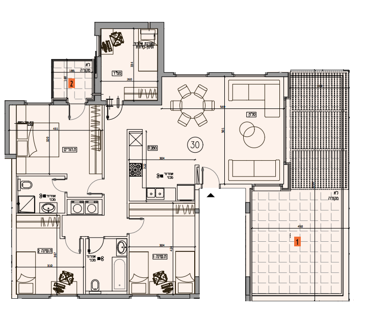 מפרט הדירות כולל מטבח בסטנדרט גבוה, מערכת חימום תת-רצפתי מתקדמת, חניה פרטית ומחסן.