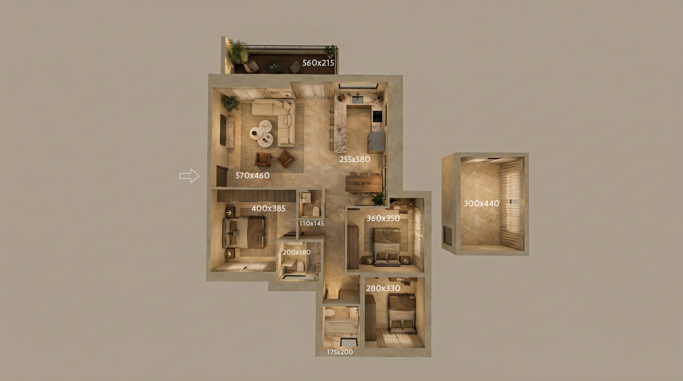 מפרט הדירות כולל מטבח ממטבחי סמל, מערכת חימום תת-רצפתי מתקדמת (משאבת חום), ומיזוג אוויר מרכזי בטכנולוגיית אינוורטר. לכל דירה חניה פרטית.